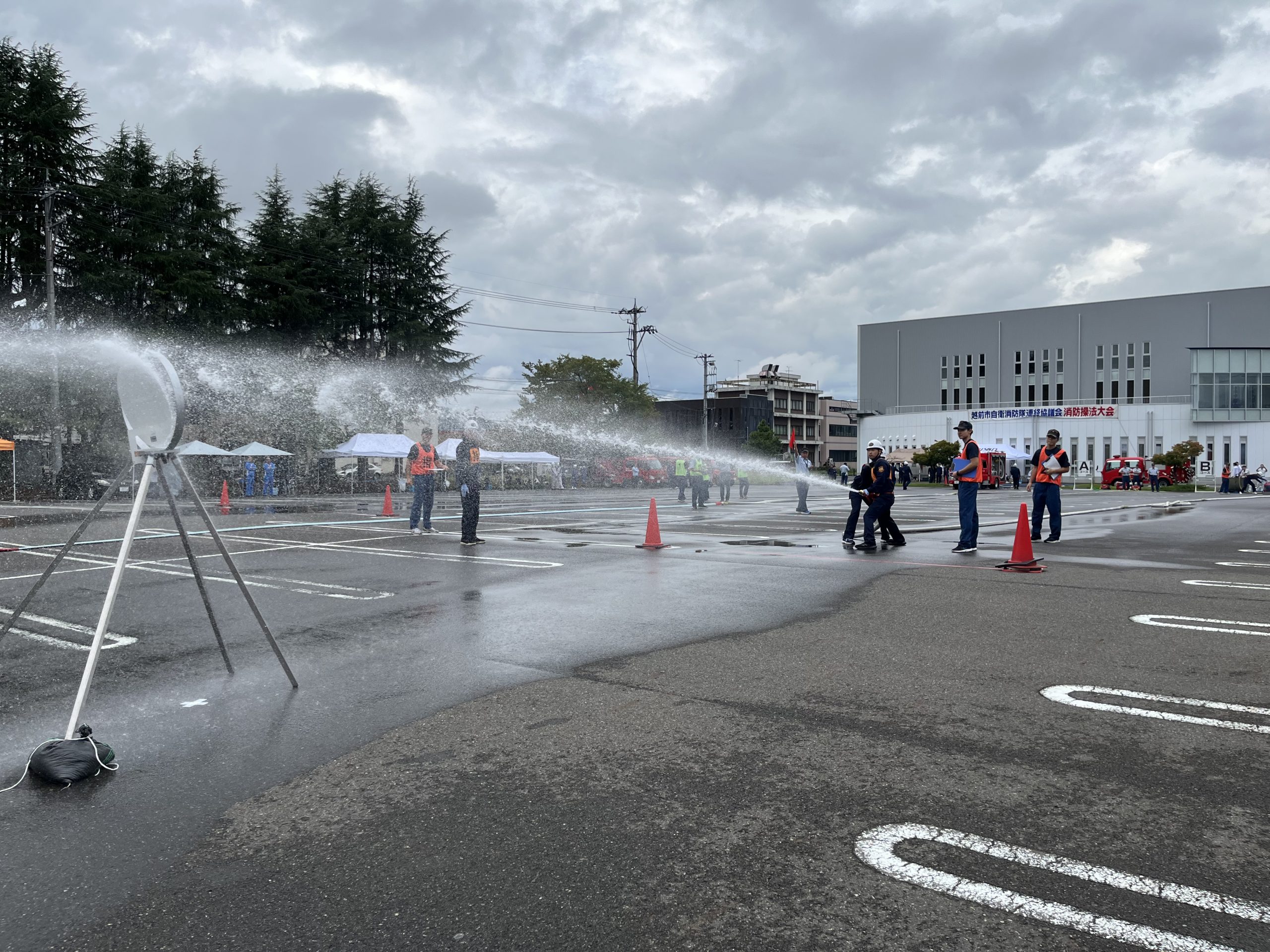9月25日(木)、アイシンスポーツアリーナの駐車場にて、 第17回越前市自衛消防隊連絡協議会消防操法大会が行われました。